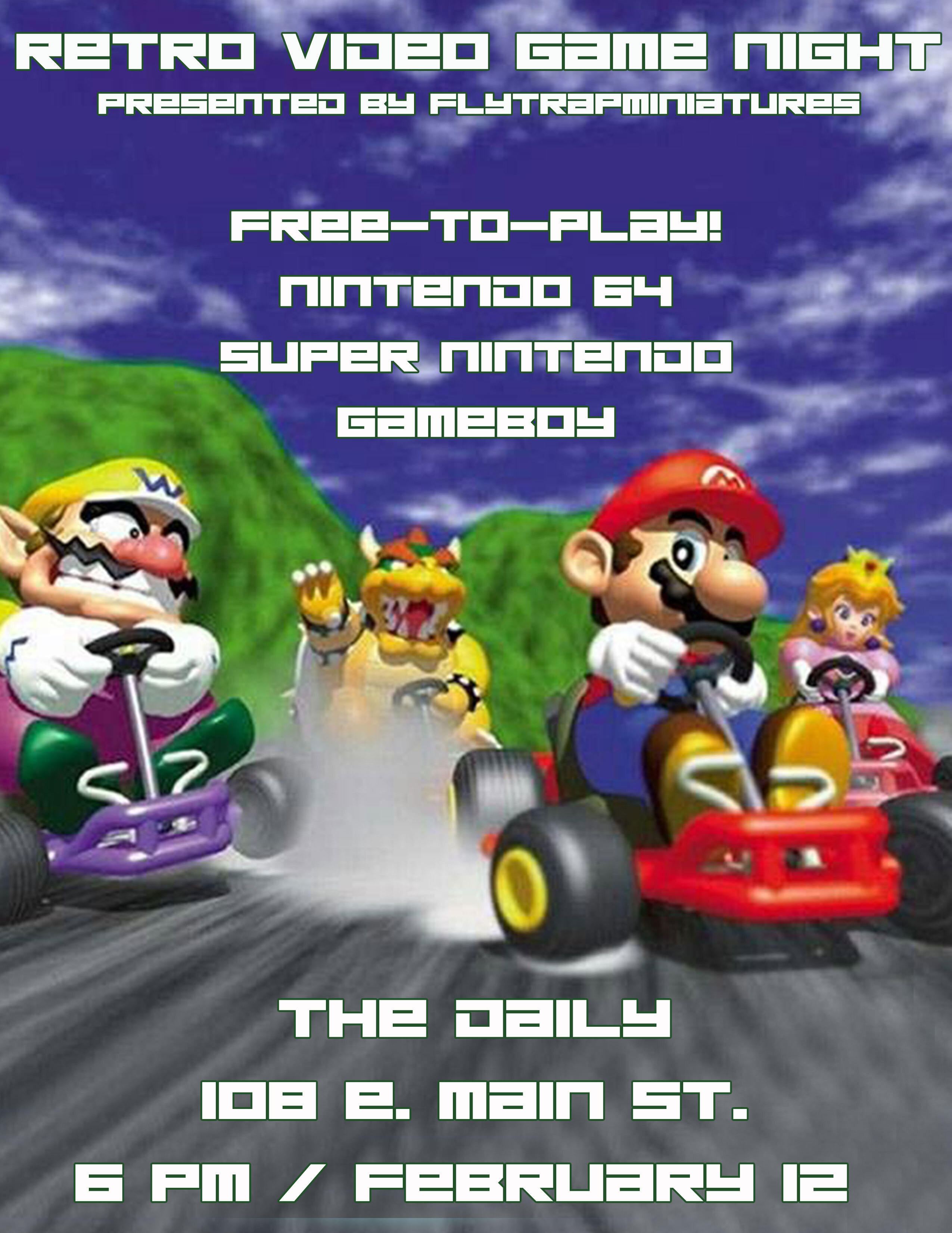 We're traveling back to the '90s with a night of retro video games. Our good friend Aaron (aka @flytrapminiatures) will be supplying a CRT TV along with some old gaming consoles. The event is free to join! Hop in a game of Mario Kart or Star Wars Episode I: Racer. We'll be hanging out from 6 - 9 PM!