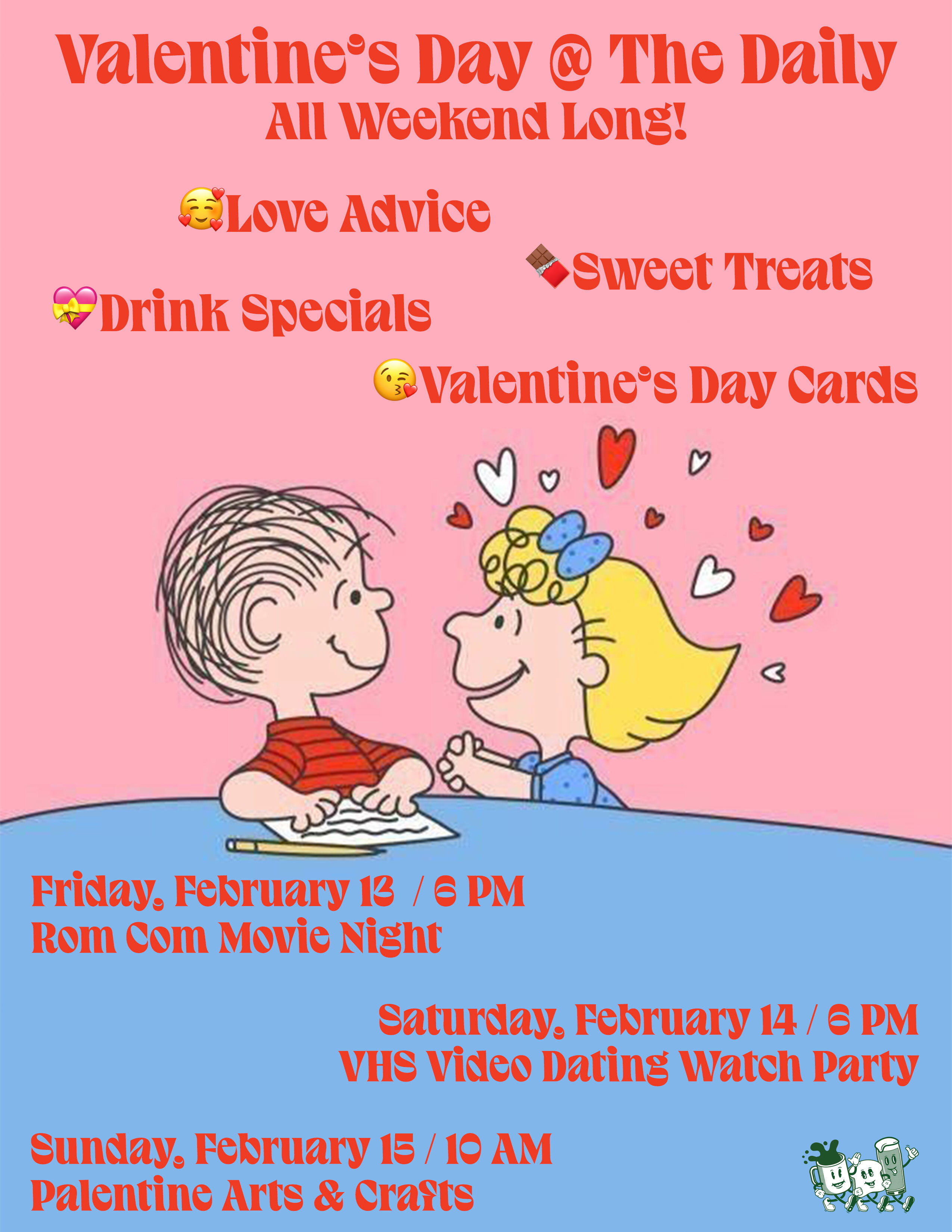 We'll be debuting our Valentine's Day drink specials on Friday with new coffee drinks, mocktails, and more! Plus, at 6 PM we'll be screening a copy of When Harry Met Sally on the projector! Swing by for free hot chocolate and a cozy comfy vibe.
